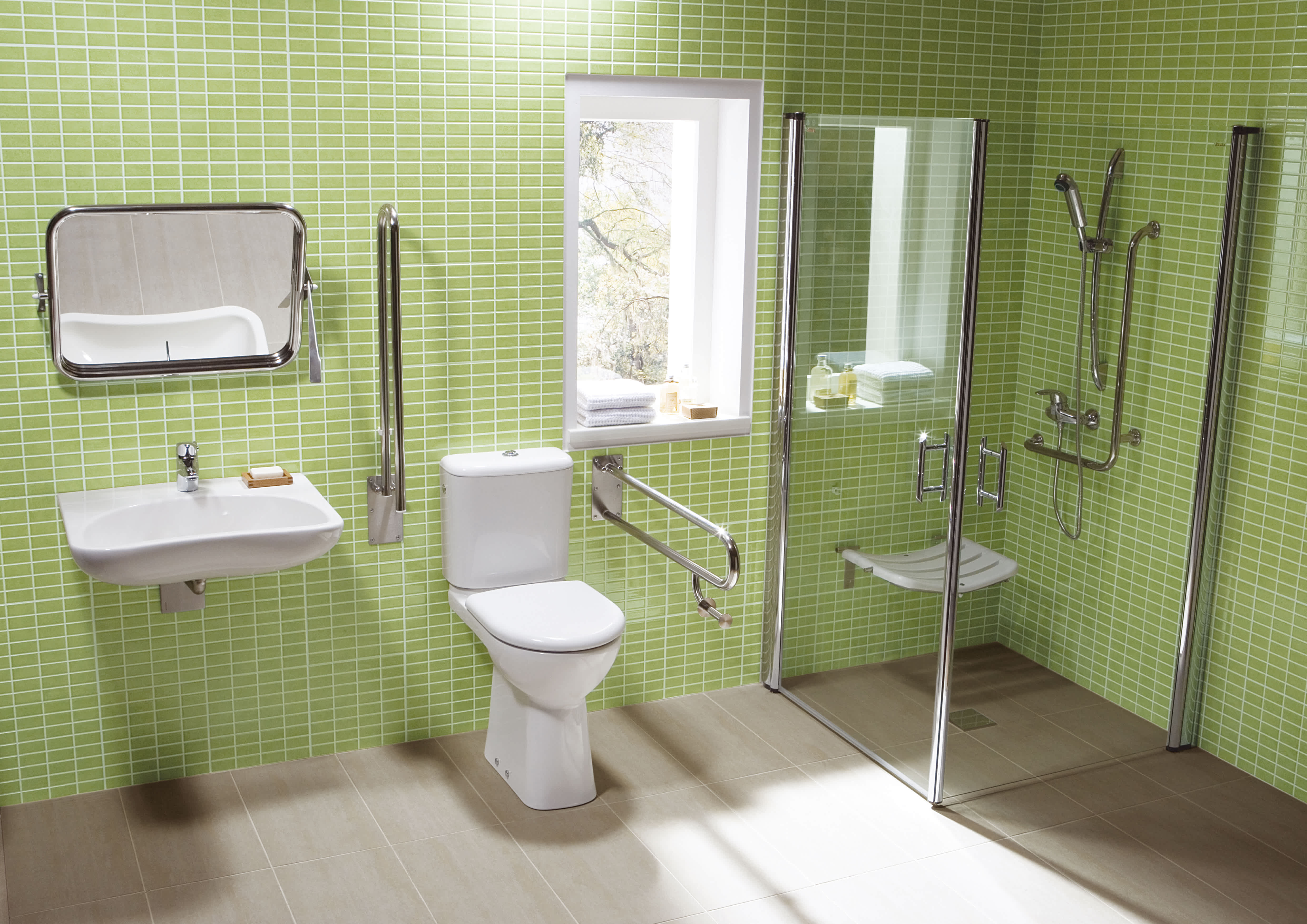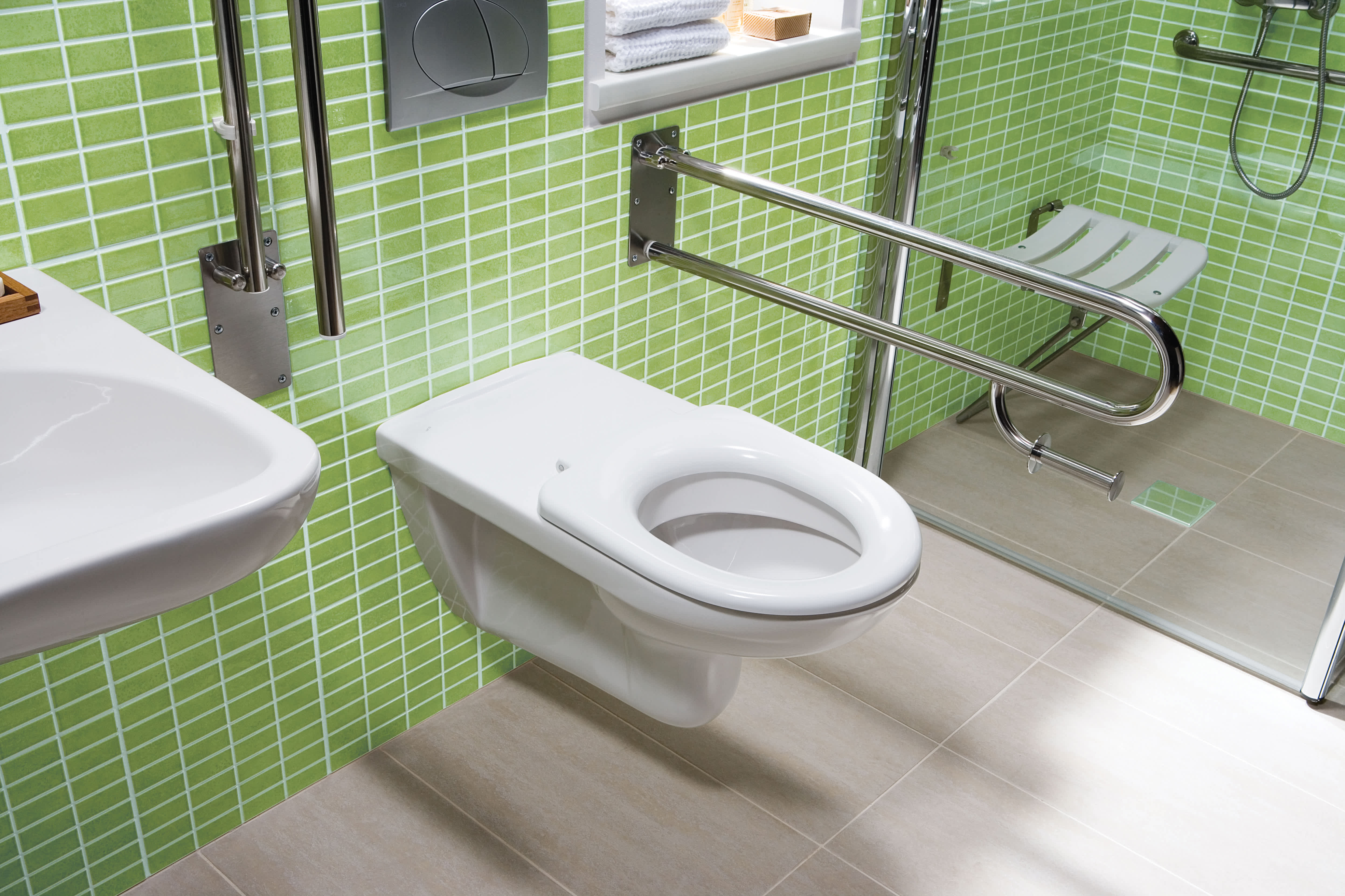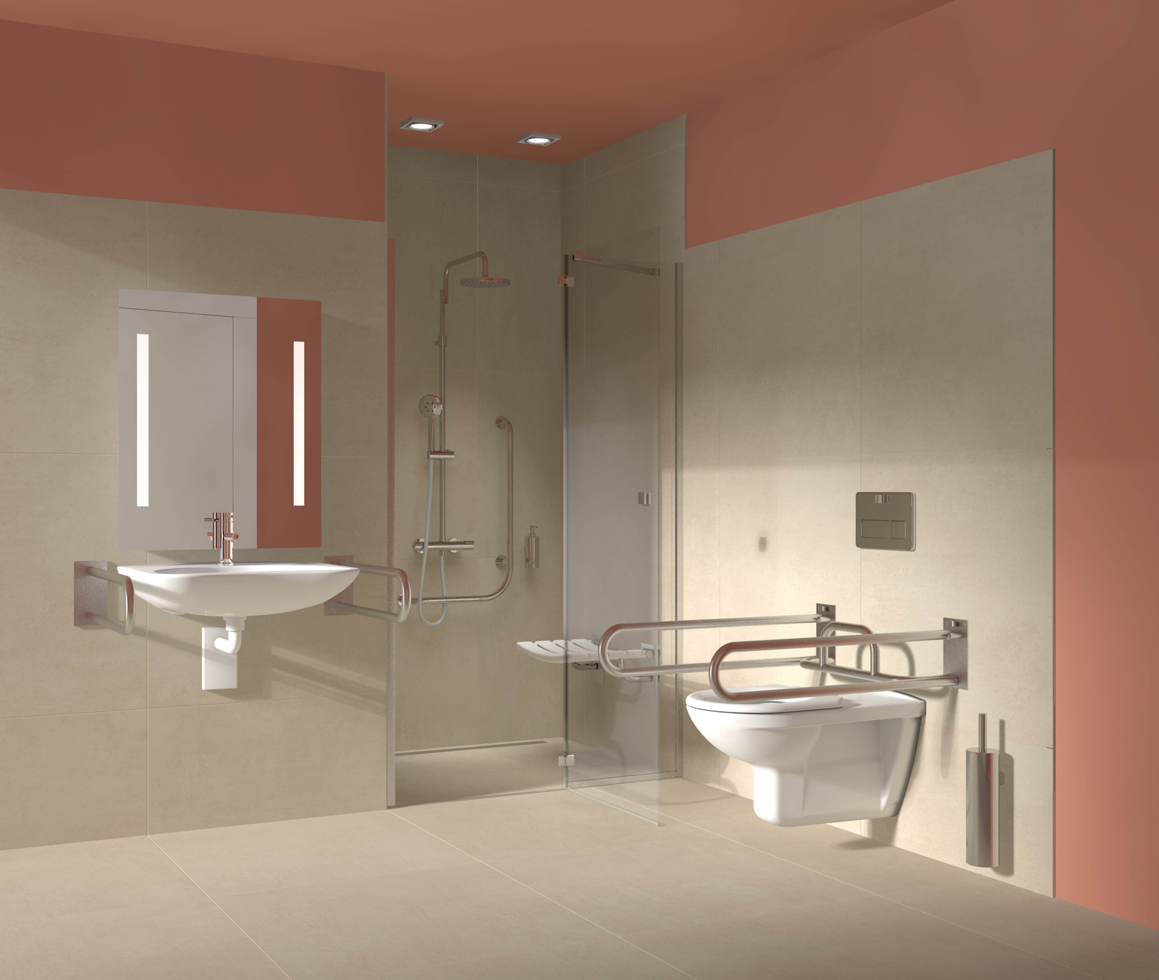 Bezpečná kúpeľňa pre každého. Vybavte kúpeľňu produkty zo série Universum tam, kde ich potrebujete. Madlá, držiaky, výklopné zrkadlá z menovanej kolekcie patria pre kúpeľňu bez bariér.
