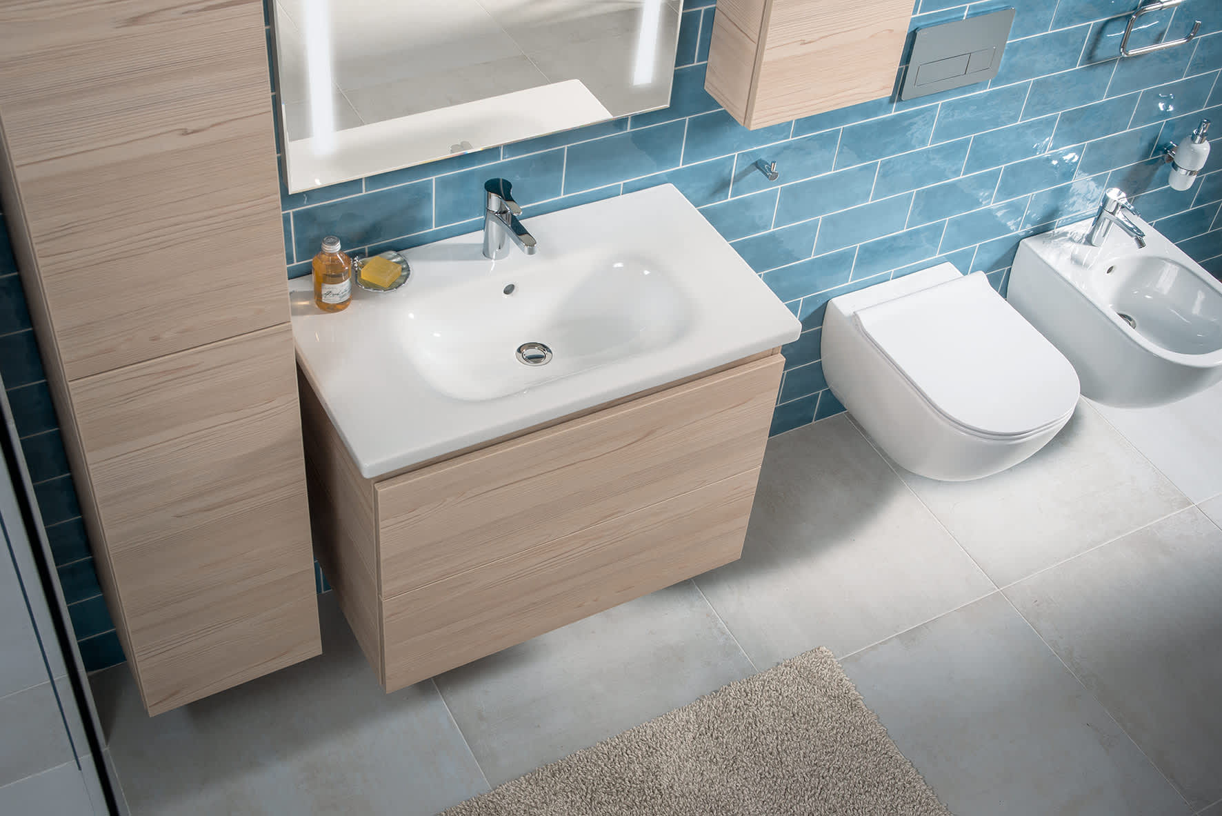 Pestrá ponuka sortimentu z kúpeľňovej série Mio-N umožňuje veľkú variabilitu. Spojenie príjemnej elegancie s praktickosťou prináša skrinka s umývadlom z tohto radu. Ich ladné prevedenie korešponduje so závesným klozetom Mio Rimless a navyše poskytuje dostatočný odkladací priestor. Prednosťou nábytku Mio-N je jednoduchý nadčasový design umocnený absenciou úchytiek.