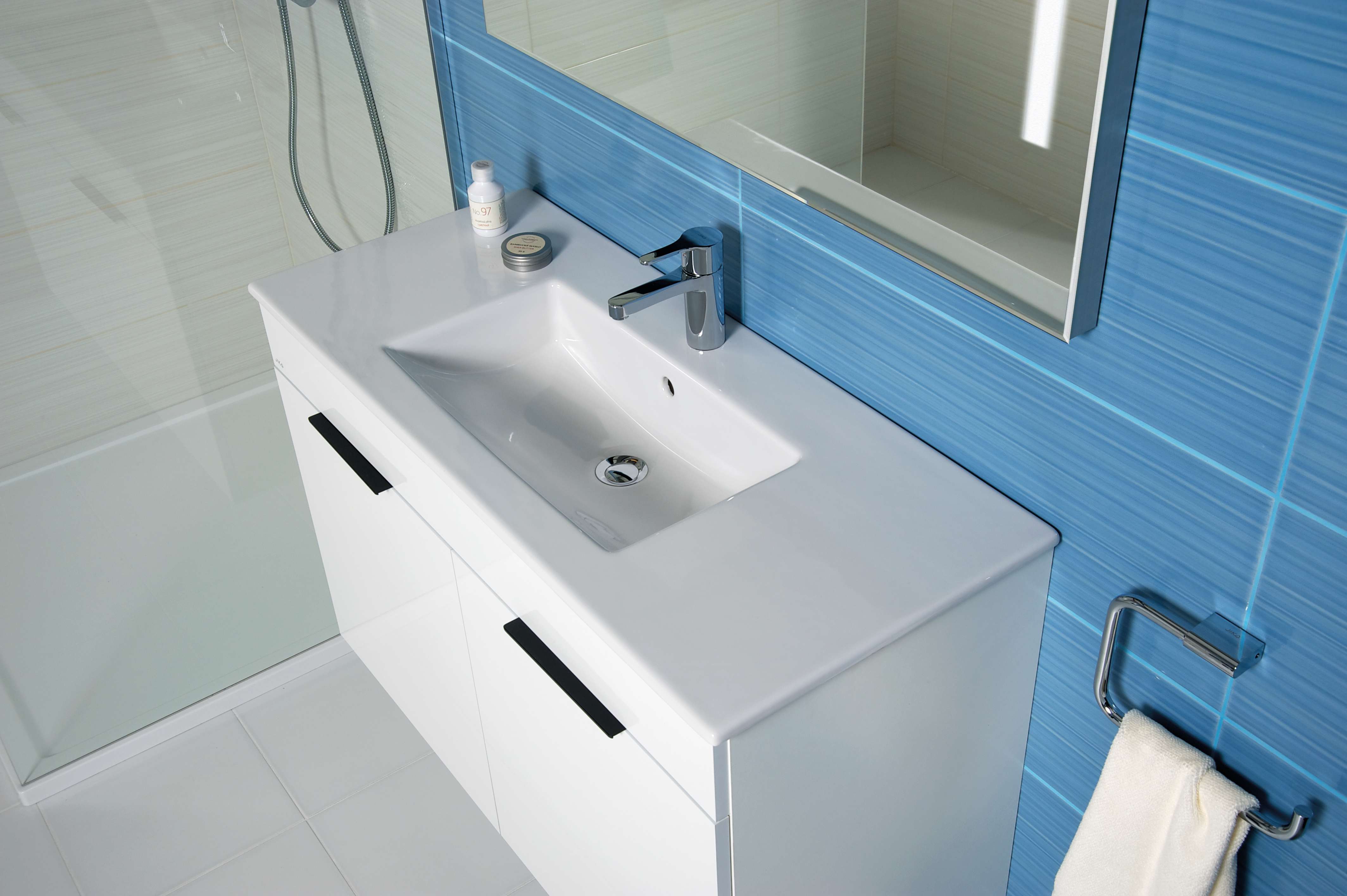 Kúpeľňová séria Cube vychádza zo súčasných trendov: čisté, geometrické tvary nábytku aj nápadného umývadla s hladkou odkladacou plochou dopĺňajú výrazné zrkadlá, ktoré zásadne opticky rozširujú veľkosť kúpeľne. Umývadlové skrinky sú ponúkané v rôznych šírkach av troch farebných prevedeniach: biely pololesklý lak, elegantný dekor dreva jaseň alebo antracit mat. Úložný priestor je riešený skrinkou alebo plnovýsuvnými zásuvkami.