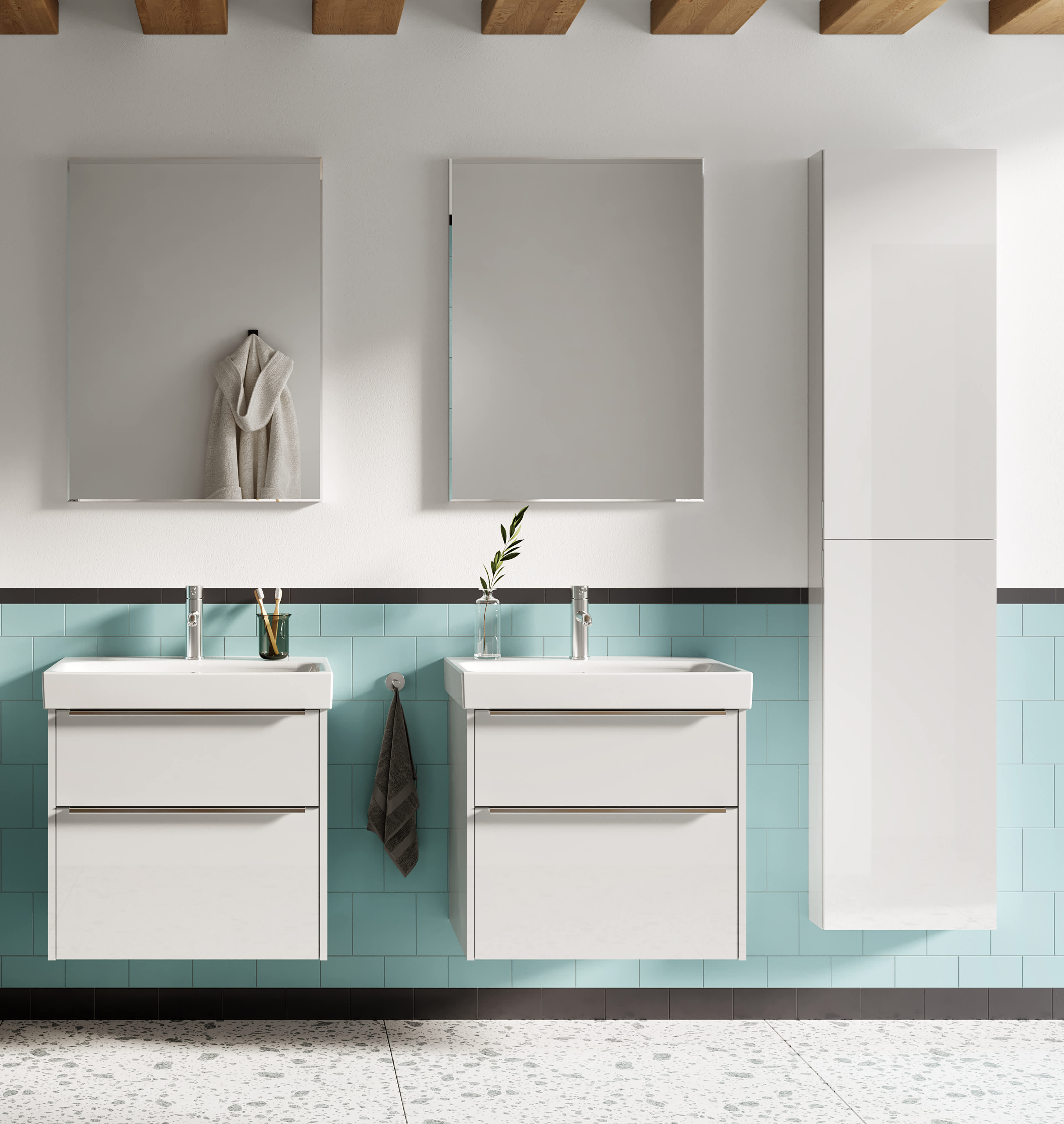 Aj dôležité rozhodnutia môžu byť dielom okamihu. Vstúpte s nami do kúpeľne, v ktorej sa budete môcť nadýchnuť nadčasovej elegancii a okamžite si zamilujete budúcnosť. Pôjde o čisté línie, noblesný vzhľad a úplne jednoduché riešenie priestoru.